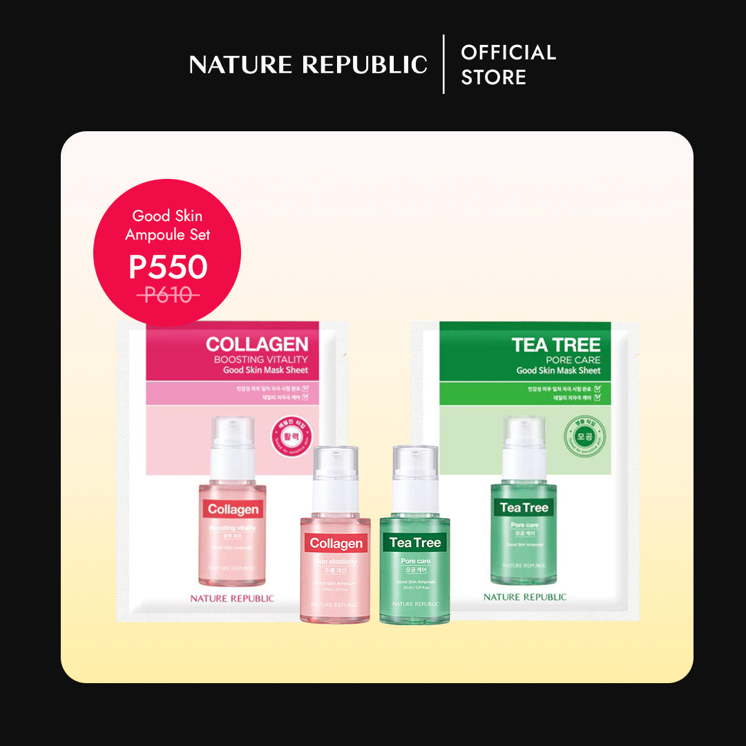 This bundle features the Nature Republic Good Skin Mask Sheet and Ampoule, designed to address various skin concerns with gentle, non-irritating ingredients. Infused with natural flower, fruit, and leaf extracts, the masks soothe and nourish even sensitive skin, while the concentrated ampoule delivers targeted benefits—from deep hydration to brightening—for a healthier, radiant complexion.