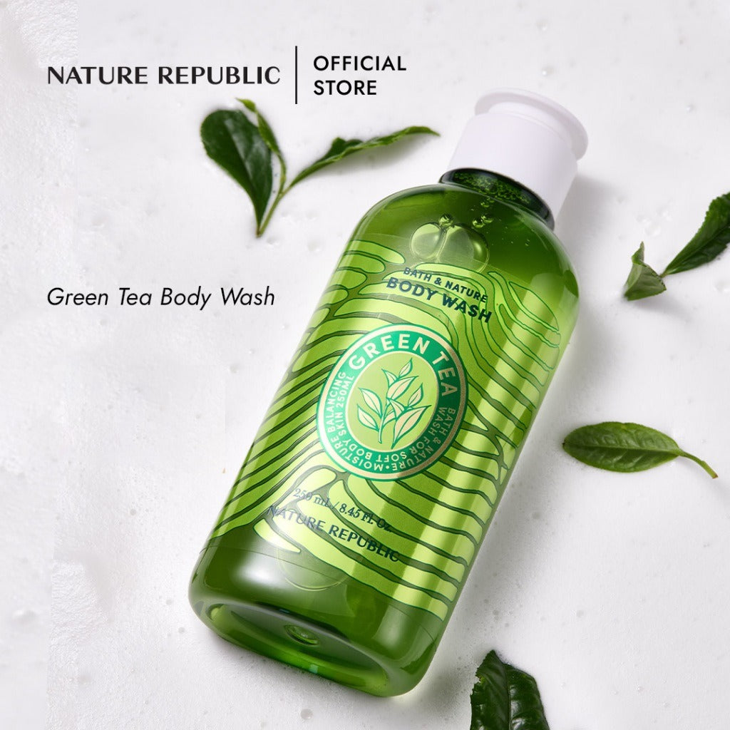 BATH & NATURE GREEN TEA BODY WASH - Green Tea is a refreshing body wash enriched with green tea essence that cleanses, energizes, and revives the skin. It gently removes impurities without stripping the skin’s natural moisture, helps keep the skin hydrated and prevents dryness, and provides a soothing effect with plant-based extracts like chamomile and aloe, leaving the skin soft, smooth, and delicately scented.