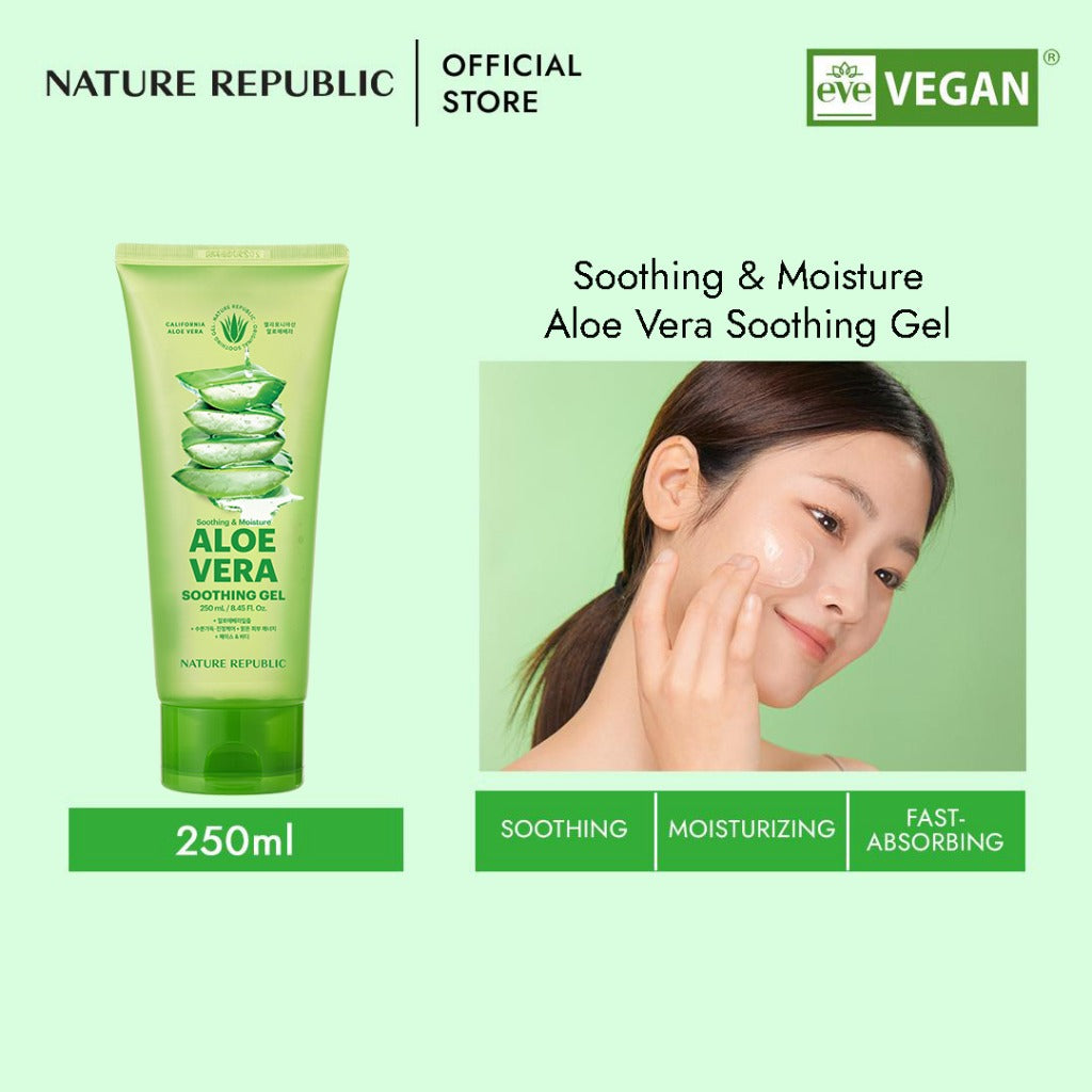 SOOTHING & MOISTURE ALOE VERA SOOTHING GEL_310ML (TUBE) - Enriched with natural aloe vera, this gel offers mild moisturization for various body parts. It's ideal for the face, arms, legs, and hair. The California aloe vera formula provides a soothing effect, enhancing your skin's natural hydration. Perfect for those seeking a gentle, natural solution.
