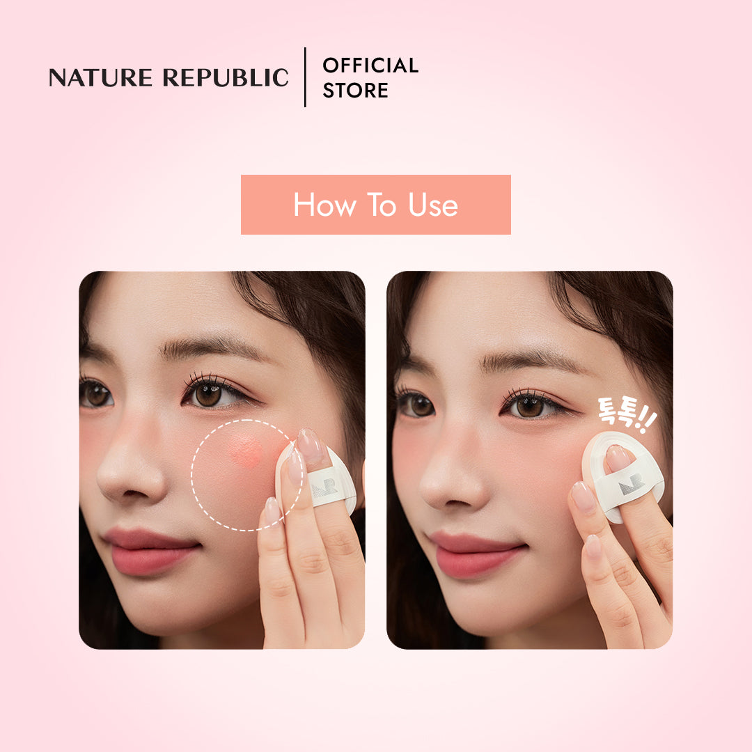 Blend gently with the built-in puff or fingertips for a smooth finish